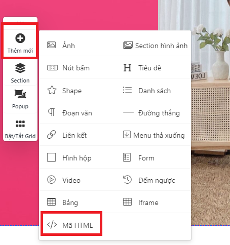 Vào Thêm mới -> Mã HTML